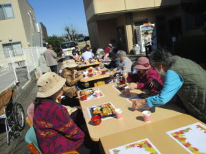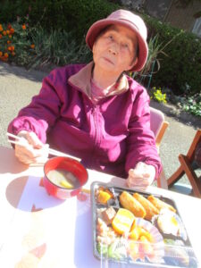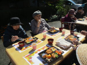 皆様、雲一つない大空の下で食べる手作りお弁当は格別だったようで残さず食べられました。