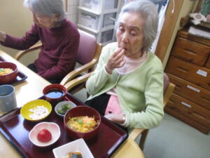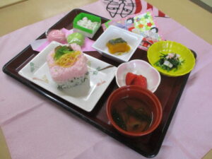 お昼ご飯前には口腔体操とひな祭りの歌を皆で歌いました。