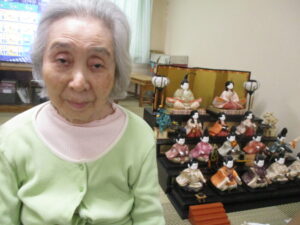 1階の利用者さんもお連れして雛人形を見ると『あっ今日は3月3日か』と言ってくださいました。