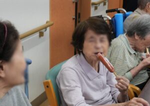 職員の子供や近所の子供も遊びに来てくれ、特に小さい子供には入居者様が「あんた可愛いね」と満面の笑みで話しかけられていました。