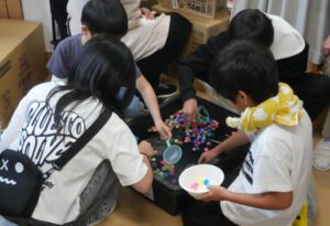 総勢約60名が参加。お肉や焼きそばの他サラダやそうめん等様々な料理があり、美味しい香りがあたり一面に広がりました。