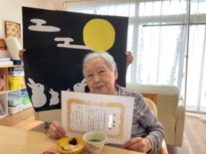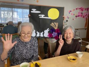9月15日、敬老の日に敬老会と秋のお月見レクを行いました✨