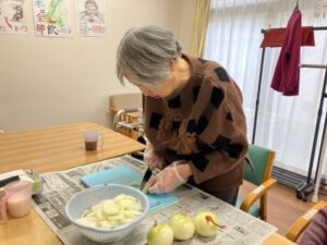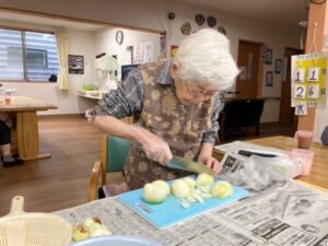 朝から準備をし、ニンジンや玉ねぎ、ナスといった野菜をみなさんに刻んで頂きました。