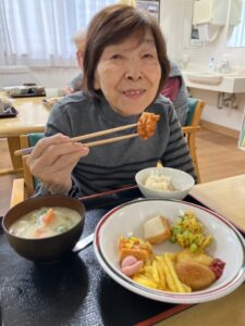 昼食はバイキング形式で選んでいただき、ポテトやピザ、シチューなど特別メニューを召し上がられました😋🍗