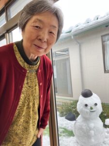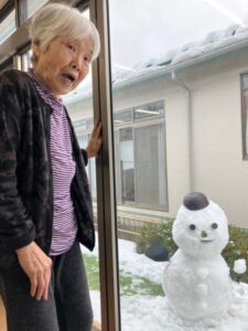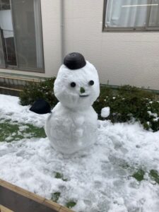 雪といえば雪だるま⛄中庭にスタッフが雪だるまを作りました😁