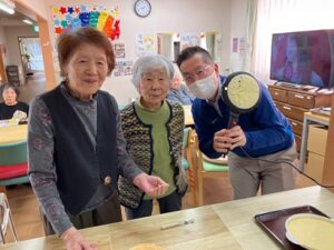何枚か焼くうちに上達され、きれいな円形ができあがりました