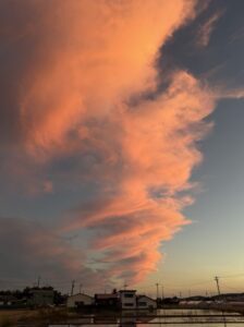 夕日と共に、こんな奇妙な雲が💦