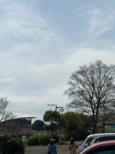 桜を眺めていると飛行機が到着🛫