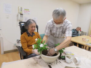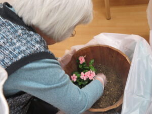 その後ホームへ戻り、皆さんで協力して少しずつ植えていただきました!