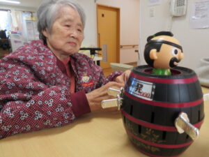1階さくらユニットでは黒ひげ危機一髪を皆さんで行われていました!
