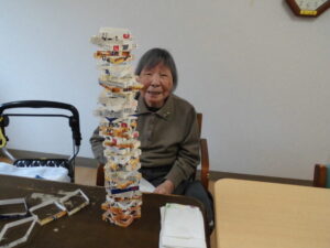 こちらは【カプラ】といって牛乳パックを切って作ったパーツを崩さないように、高く積み上げるゲームです!