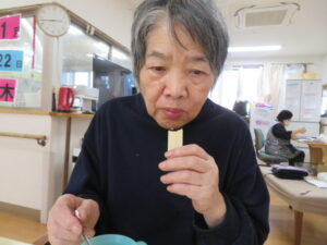 おやつには“甘酒ヨーグルト”と日替わりのゼリー、鉄分とカルシウムが摂れるウエハースを現在提供しています!