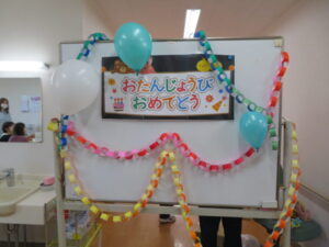 1階ではお誕生日会に向けて、ケーキを作ってくれていました🍰