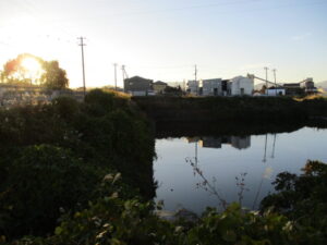 ホーム前の用水路に鴨がやってきました。
