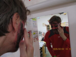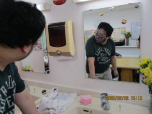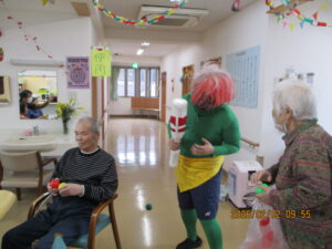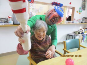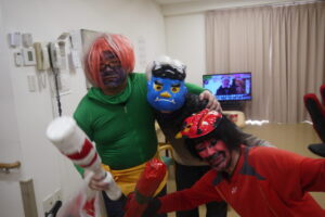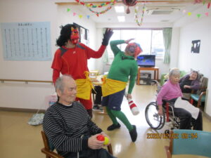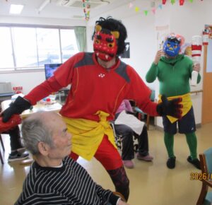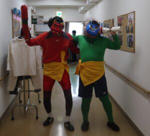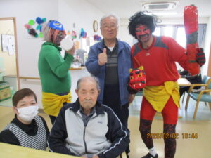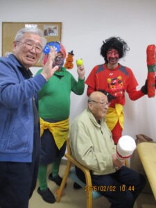 さてさて寒さに負けない室内では2月3日節分の日に豆まきをしました。