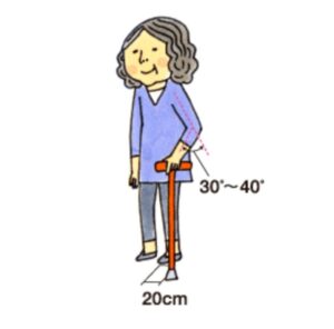 直立した状態で、足のつま先より縦・横15~20㎝の位置に杖の先を置き、杖を握った位置で計測します。