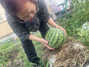 畑ではスイカやゴーヤ、ナス、きゅうりが育ちが良く
