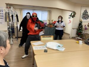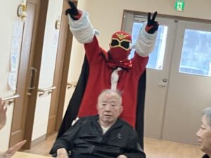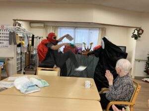 介護とアクションをミックスしたヒーローショーになっております。