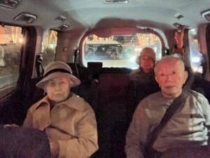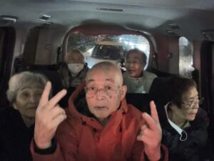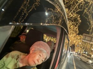 車内もクリスマスの音楽を流しながらワイワイガヤガヤ。