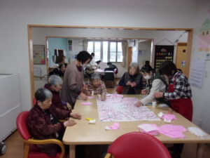 足湯やネイルを待たれる方は、暖かい春がやって来るのを願いながら皆さんで「ちぎり絵」を作成される方、カラオケを楽しまれる方、皆さん思い思いに楽しまれていました ☺