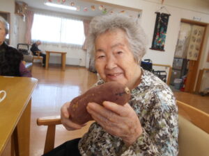 オーブンでじっくり焼き上げると、ユニット内あま~い香りに包まれて、1階から来たスタッフが思わず「焼き芋屋さんの匂いだ。」😲