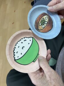 ポーズを真似して手で形作ったり、絵の描かれたお皿を用いてゲームをしたりしました。
