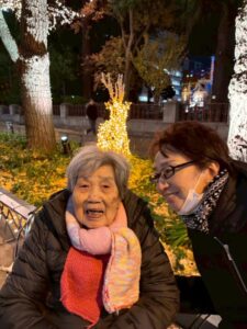 いちょうの並木道が綺麗な光の装飾に包まれていました。