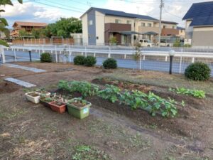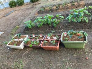 植えたプランターは、ホーム敷地内の畑に設置しました。