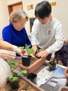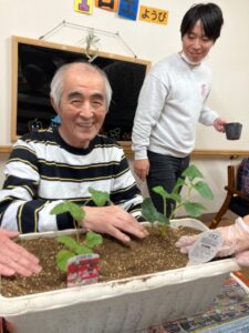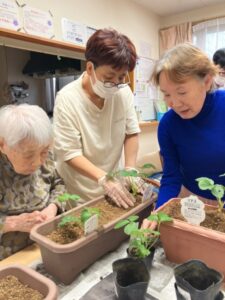 「昔よくやったのよ」「これなら任せて」と、皆さま慣れた手つきで、土を整え、苗を丁寧に植えてくださいました。