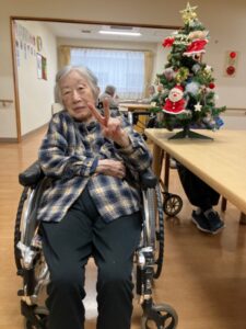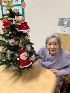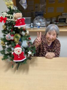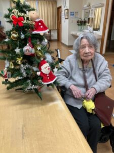 女性の利用者様は飾りを見ながら「可愛いね」と
