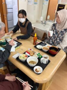 今回の行事は、愛の家グループホームで働くグローバルスタッフの母国料理を皆で味わいながら、他国の文化に触れてみようという企画です。