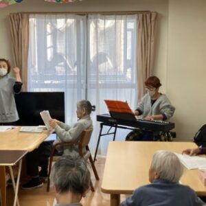 当日は、歌のレクリエーションとしてボランティアの方にもお越しいただき、懐かしの歌を皆さんで一緒に歌いました。