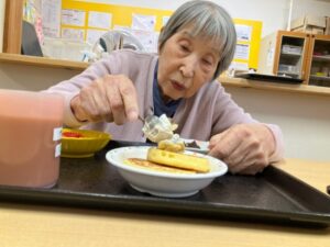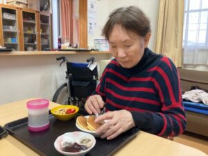 なかなか上手く出来ず途中で食べてしまわれる利用者様のおられました。