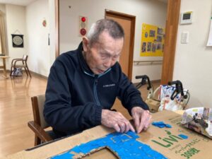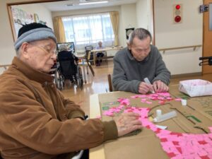 2月の節分に向けて、スタッフと利用者様が一緒にレクリエーションの準備を進めています!