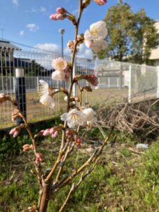 ホームに植えてあるさくらんぼの木にも、今年も可愛らしい花が咲き始めました。淡い色の花が風に揺れる様子に、皆さまも「もう春だね」と笑顔を見せてくださいました。