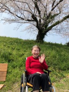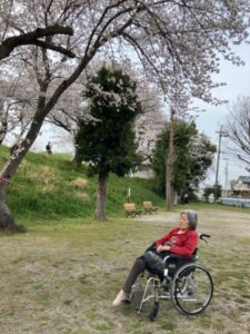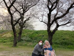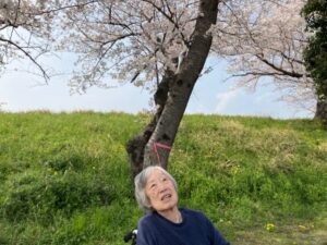 桜を見上げながら、「きれいだね」「こんなに咲いているのは久しぶりに見たよ」といった声があちこちから聞こえ、自然と笑顔があふれます。中には「昔は家族でお花見をしたものだよ」と懐かしそうに思い出を語られる方もいらっしゃり、和やかな会話が広がりました。満開の桜の下で、利用者様同士や職員との交流も深まり、穏やかで心温まる時間となりました。