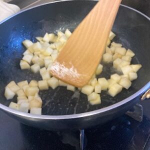 甘く煮詰めてパンケーキをスタッフが作りました。