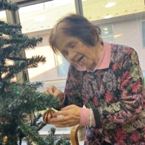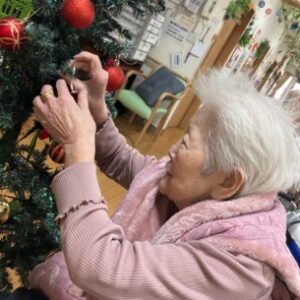 ひのきフロアにシクラメンの壁飾り✨冬ですね~