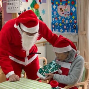 Iちゃんの呼び声で鈴を鳴らしてサンタ登場!