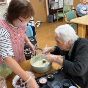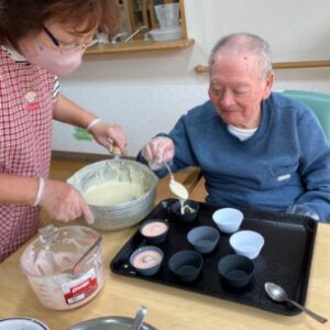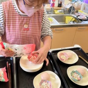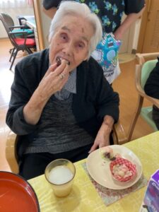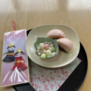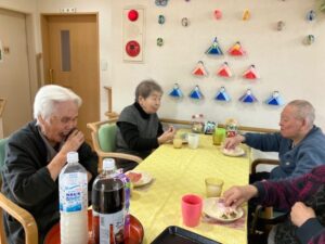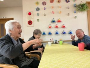 その頃、入居者様は雛おやつ待ちでお喋り中。