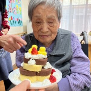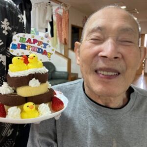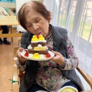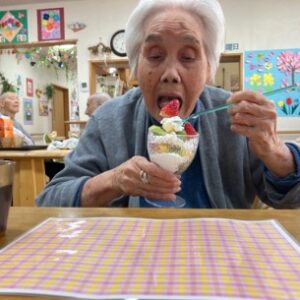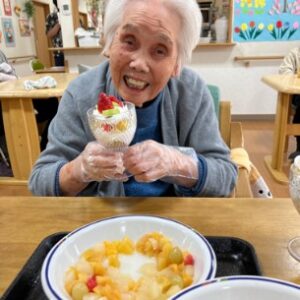 ケーキはF様へ、みんなはフルーツパフェ🍓🥝🍌