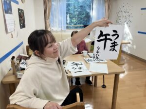 皆様、午年にちなんだ言葉や、今年やりたいことなどを熱心に書いていらっしゃいます。
