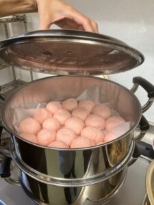 おやつにも手作り紅白饅頭(´~`)モグモグ
