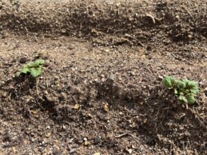 じゃがいもが、いよいよ土を押し上げて元気な芽を顔に出しました。