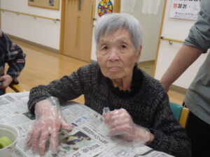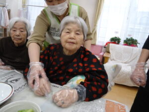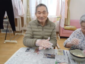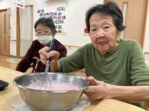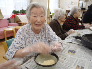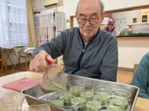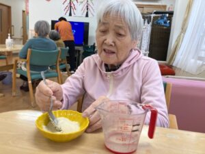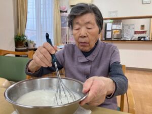 午前中は、おやつ作りを皆さんで行いました