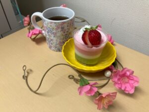 「菱餅カラーのミルクゼリー」「豆腐白玉のフルーツポンチ」を作りました