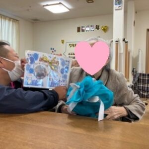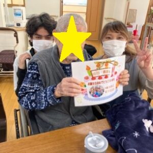 また、他のご利用者さまやスタッフから「おめでとう」「これからも元気でね」と 声をかけていただき、皆さま嬉しそうにされていました。