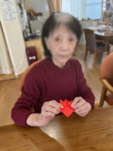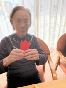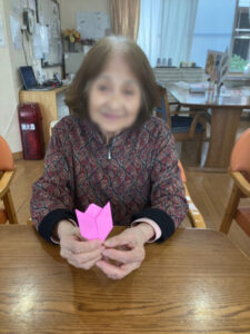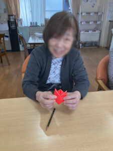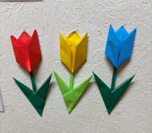 今日は皆さんと折り紙で「チューリップ」を折りました。