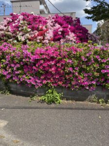 皆さん歩いて向かっていると、つつじの花がたくさん咲いているのをみて喜んでいました。