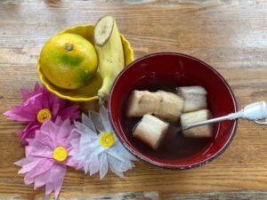 ぜんざいは、お餅ではなく、麩を代用しました(^^)
